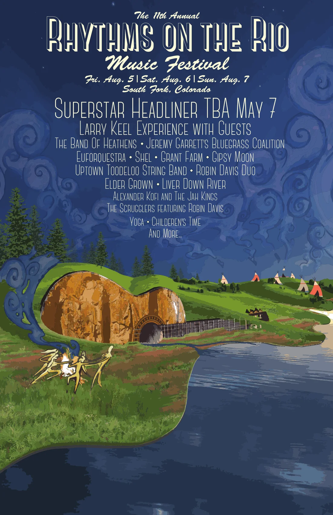 We're psyched to be returning to one of our favorite Colorado festivals, Rhythms On The Rio in South Fork, CO on August 5-7! This small festival packs a big lineup! We'll be performing alongside Larry Keel, Gipsy Moon, The Band Of Heathens, and so many more!